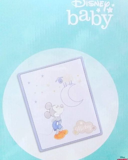 Preciosa manta de Cuna con el personaje Disney de Mickey Mouse en color Celeste ideal también para que los príncipes y princesas esten calentitos, en el sofá…Tiene un tacto super suave y agradable devido a su tejido aterciopelado.